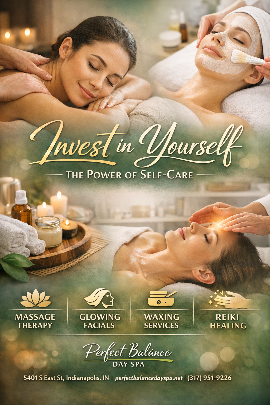 At Perfect Balance Day Spa, we believe that investing in yourself through consistent, high-quality self-care—like massage therapy, facials, skincare treatments, waxing, and Reiki energy healing—is one of the most powerful things you can do for your mind, body, and spirit.